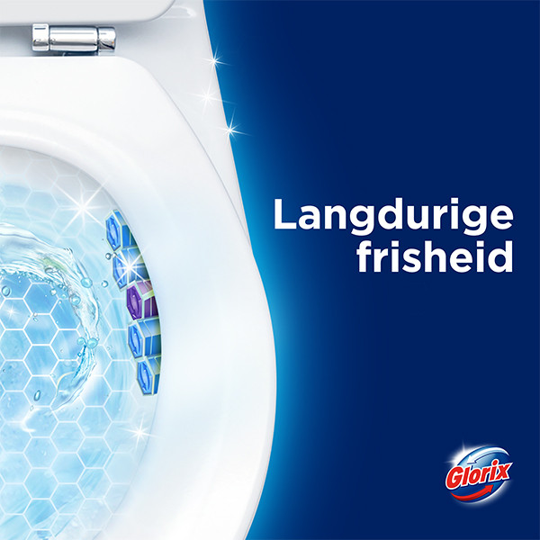 Met het Glorix Power Clean Ocean Toiletblok maakt u van elke spoelbeurt een effectieve reinigingsbeurt. Dit toiletblok combineert krachtige reiniging met anti-kalkwerking, waardoor uw toilet niet alleen fris blijft, maar ook glanzend schoon wordt. Het reinigende schuim zorgt voor langdurige hygiëne, zodat u dagelijks kunt genieten van een fris toilet. Daarnaast is de hanger 100% recyclebaar, wat bijdraagt aan een duurzame keuze.