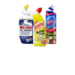 • WC reinigers: deze reinigers verwijderen effectief aanslag, urinegeur en vuil uit het toilet. Ze zijn verkrijgbaar in verschillende varianten, zoals gels met of zonder bleek. Dankzij de handige flaconvorm kunt u eenvoudig onder de rand reinigen.