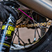 Zorg dat de ketting schoon en droog is. Schud de spuitbus goed en breng de kettingspray in één keer aan door het wiel rond te draaien. Laat de kettingspray goed drogen voordat u weer gaat rijden.