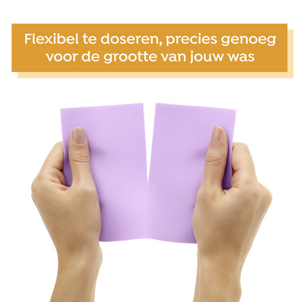 Flexibel doseren is met deze doekjes zeer eenvoudig. Daarnaast zijn de doekjes erg licht, hierdoor is de verpakking niet zo zwaar en is het kleiner dan andere wasmiddelverpakkingen. Zo neemt u de doekjes makkelijk mee op reis. Dankzij het kleine formaat bevinden de doekjes zich in een plasticvrije verpakking. De verpakking bevat 16 wasstrips.