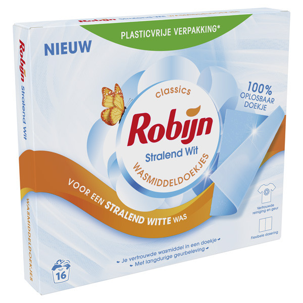 Robijn Wasmiddeldoekjes Stralend Wit (16 wasbeurten)