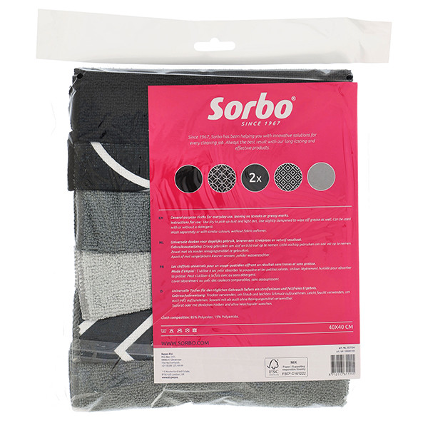 Bij aankoop ontvangt u een verpakking met daarin 6 stuks Sorbo microvezeldoeken.