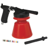 In deze set vindt u een ruime tank van 2,5 liter, een foam-injector, een aanzuigslang, een combinatiepistool, veertien verschillende mondstukken en een afspuitlans.