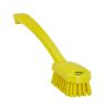 Deze blauwe afwasborstel van Vikan is smal en zeer handzaam. Door het ergonomische design, met de gebogen vorm en lange steel, blijven uw handen ver van het te reinigen oppervlak af tijdens het schoonmaken. Hierdoor wordt de hygiëne van de gebruiker gewaarborgd. De borstel kan zowel gebruikt worden voor het reinigen van vaat als voor werkbladen en apparatuur. De borstelharen zijn gemaakt van polyester-vezels, materiaal waarmee effectieve reiniging verzekerd wordt.